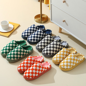 חורף נשים של נעלי בית חם משובץ בית שקופיות Y2k שחמט אופנה מקורה נעלי בית זוג נעלי בית תוספות בנות קטיפה שקופיות